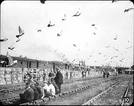 10) Its the start of a pigeon race! You might not think that there was much connection between homing pigeons and the railways, yet here you can see British Railways releasing about fifteen thousand pigeons from Newcastle at Welwyn Garden City Station.